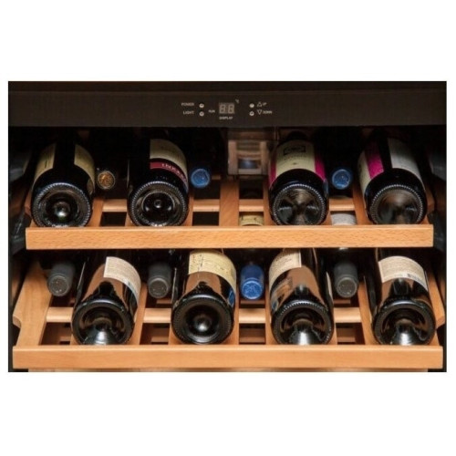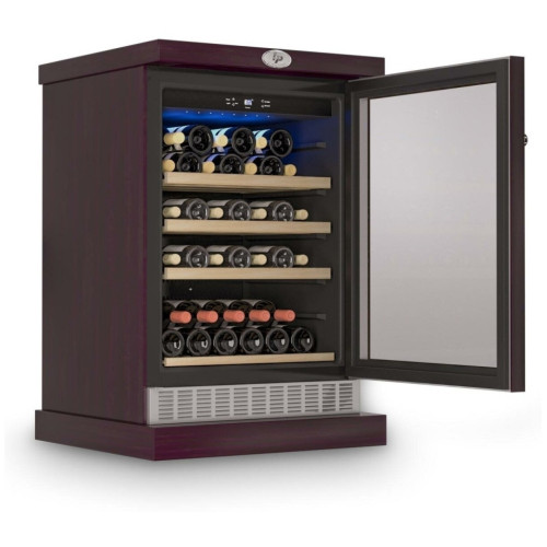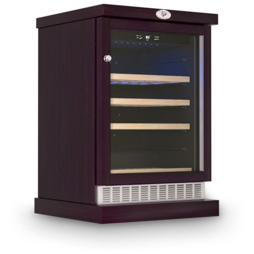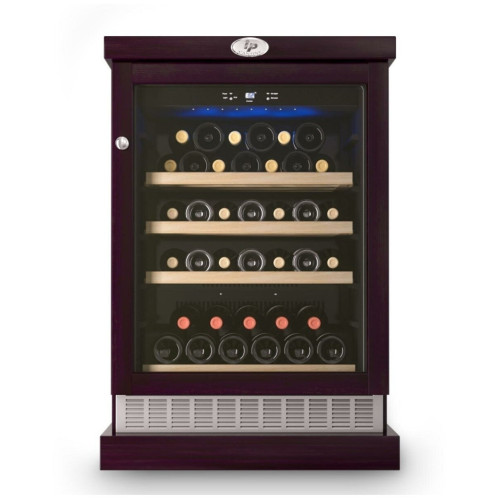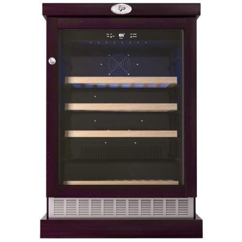 Винный шкаф для дома IP Industrie CEXP 45-6 VU на 45 бутылок. Компактный однозоновый винный холодильник в корпусе из деревянных панелей. Цвет корпуса - венге. Компрессорная отдельностоящая модель. Циркуляция воздуха - внутри шкафа благодаря вентилятору обеспечивается циркуляция воздуха для равномерного охлаждения всего внутреннего пространства даже заполненного шкафа. Общие данные: Размеры: высота: 98 см ширина: 65 см глубина: 63 см Максимальное количество бутылок: 45 Тип управления: электронный Количество температурных зон: 1 Температурный режим: 5 С-18 С. Тип системы охлаждения: компрессорный Винное отделение: Полки: 4 штуки (3 деревянные полки и 1 полуполка), бутылки располагаются в один ряд по глубине Циркуляция воздуха Дополнительная информация: Дверь изготовлена из двойного стеклопакета в рамке из дерева Стеклопакет с защитным напылением от уф-лучей Тип стекла: тонированное Корпус из металла, обшит деревянными панелями Дверной упор расположен справа, не перевешивается; На двери установлена накладная ручка, дверь оборудована замком; Сенсорная панель управления с индикатором температуры;