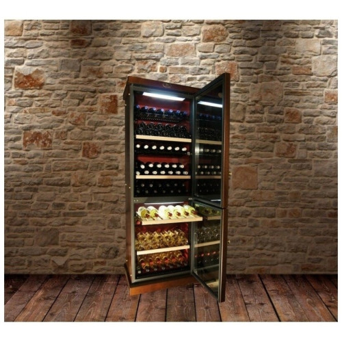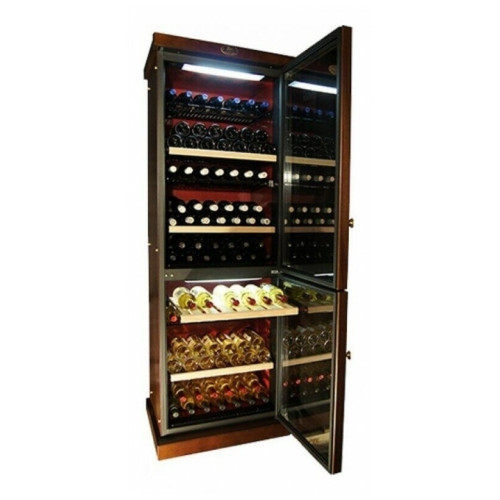 Деревянный отдельностоящий компрессорный винный шкаф IP Industrie CEXP 601 для хранения до 138 бутылок вина с одной зоной охлаждения, идеальное решение для кабинетов и интерьеров, выполненных в классическом стиле.Корпус модели IP Industrie CEXP 601 металлический, внешняя отделка винного шкафа выполнена из древесины Risto Line в четырех цветовых решениях. Дверца - из двойного стеклопакета с защитой от уф лучей с удобной ручкой в классическом стиле.Модель оснащена статической системой охлаждения на базе компрессора SECOP (Danfoss), которая кроме охлаждения вина еще и сохраняет оптимальную влажность внутри камеры. Комплектуется шкаф девятью деревянными полками.Винный шкаф IP Industrie CEXP 601 предназначен для использования как отдельностоящий.Отличительные особенности:Серия: WoodОдна зона охлажденияАвтоматическая система разморозки.Девять деревянных полок без лакового покрытия, четыре из которых стандартные и пять маленьких.Нагреватель для поддержания оптимальной температуры в шкафу.Электронный термостат с цифровым дисплеем.Гарантия 2 года.Функциональные особенности:Дверца шкафа выполнена из тонированного двойного стеклопакета с защитой от УФ лучей.Модель выполнена в деревянном коробе Risto Line, толщина которого меньше, чем у моделей с маркировкой CEX.Регулируемый температурный режим в диапазоне от +4°C до +18°C подходит для хранения большинства сортов вин.Удобная панель управления обеспечивает простую и быструю установку необходимой температуры.Замок есть.Внутреннее освещение (лампа дневного света).Количество зон: двеТемпературный режим: +4..+18 °CКоличество бутылок: 134 шт.Условие эксплуатации: 0..+36 °CХладагент: R134aОхлаждение: статическоеДверь: стеклянная с защитой от УФПолки: 9 шт.Подсветка: естьОбъем: 410 л.Внутренняя влажность: 60 - 70 % (ванночка с водой)Потребляемая мощность: 480 ВтЭнергопотребление в сутки: 1,212 кВтЭнергетический класс: СНоминальное напряжение: 220 В, 50 ГцКорпус: деревянный Разморозка: автоматическаяУгольный фильтр: нетЗимний режим: естьПеревеска двери: нетЗамок: естьУровень шума: 43 дБРазмеры (ШхГхВ): 670х635х1935 ммМасса (без упаковки): 116 кг