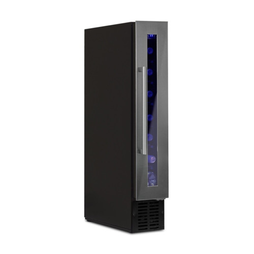 Компактный и лаконичный винный шкаф Cold Vine C7-KST1 вмещает в себя 7 бутылок вина типа бордо. Модель оснащена внутренним вентилятором для равномерного доступа холодного воздуха ко всем полкам шкафа и внешним вентилятором для быстрого и эффективного охлаждения компрессора. Комплектуется холодильник C7-KST1 шестью полками из пластифицированного металла. Надежная фиксация полок исключает возможность малейших вибраций и колебаний внутри шкафа. В верхней части шкафа находится интуитивно-понятная электронная панель управления, с легкостью регулируйте температуру и освещение внутри шкафа. Лаконичный дизайн модели подойдет для любой современной кухни, бара или гостиной. Корпус винного шкафа выполнен из металла чёрного цвета, дверца обшита бесшовной нержавеющей сталью. Тройное защитное стекло защитит Вашу винную коллекцию от вредного воздействия солнечных лучей и поможет создать идеальный микроклимат винного погреба внутри шкафа. Удобная накладная ручка из нержавеющей стали легко снимается и устанавливается на дверцу. Цифровой индикатор температуры и внутреннее освещение – на светодиодах синего цвета.