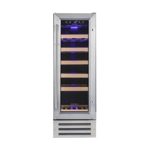 Винный шкаф Temptech Premium WPQ30SCS предназначен для охлаждения, хранения и демонстрации бутилированного вина. Модель оснащена сенсорной панелью с дисплеем для регулировки температуры и освещения, 6 выдвижными полками, фильтром с активированным углем и синей светодиодной подсветкой. Дверца выполнена из двухслойного стекла с защитой от УФ-лучей, передняя панель - из нержавеющей стали, полки - из бука. Особенности: * Оптимальная влажность * Стабильная температура * Вентиляторы, обеспечивающие циркуляцию воздуха * Бесшумный компрессор * Специально разработанные ножки - гасители вибрации * Встраивается под столешницу или устанавливается как отдельностоящий * Хладагент: R600a * Энергетический класс: G * Сертифицировано RoHs, CE, CB, ERP
