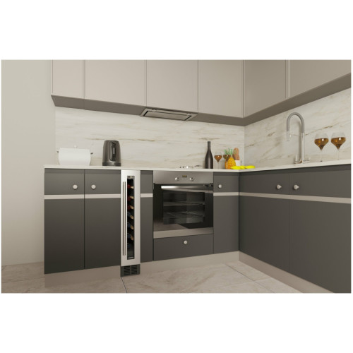 Компрессорный шкаф Connoisseur CX-9 – самая компактная модель, представленная компанией Libhof. Он обеспечит для Вашей коллекции алкоголя условия хранения, аналогичные винному погребу. Данную модель винного холодильника можно встраивать в кухонную мебель, она идеально сконструирована для монтирования под столешницу. Современное светодиодное освещение гарантирует минимальный нагрев диодов без опасений перегрева и нарушения температурного режима в камере. Стекло в дверце холодильника обработано специальным антиультрафиолетовым напылением. Полки из натурального дерева изолируют вибрации от работающего компрессора, которые вредили бы вину и приводили к образованию осадка. Сенсорная панель управления обеспечивает простую и быструю установку необходимой температуры.