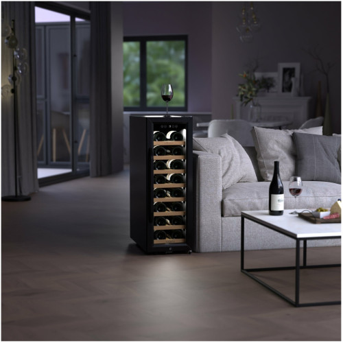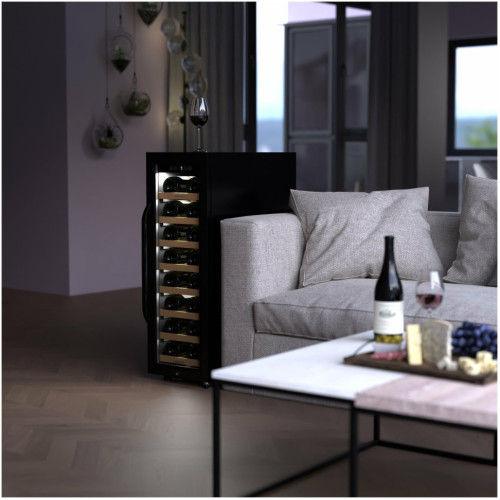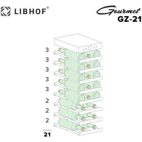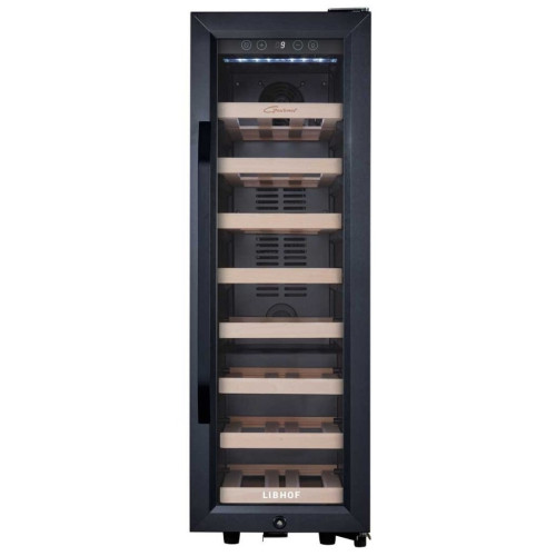Шкаф для вина Gourmet GZ-21 обеспечит для Вашей коллекции условия хранения, аналогичные винному погребу. Лаконичная модель черного цвета отлично дополнит интерьер кухни, бара или гостиной, а стеклянная дверца и внутренняя подсветка позволят выбрать вино, не открывая шкаф. Для охлаждения винных бутылок используется современная компрессорная система, обеспечивающая минимальный уровень вибраций. Температурный режим в диапазоне от +5°C до +18°C с минимальным отклонением под управлением высокоточных электронных датчиков предназначен для хранения белых и красных вин. На полках из массива бука не образуется конденсат, что исключает вредную для этикеток повышенную влажность. Для защиты от детей предусмотрен замок на дверце.