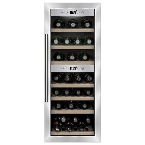 Двухзонный компрессорный винный холодильник CASO WineGourmet 38, предназначенный для хранения вина в температурном диапазоне от 5 до 20°C. Верхняя зона предназначена для хранения белых и игристых вин, нижняя – для розовых и красных. Зоны работают автономно, каждая оборудована собственным контуром охлаждения и панелью управления. Компрессор подвешен на резиновых демпферах, что снижает вибрации, губительные для вина. Семь съемных полок из дерева предназначены для правильного хранения вина: бутылки кладутся горизонтально (вместительность – 38 бутылок). Управление осуществляется при помощи двух сенсорных панелей внутри холодильника. Регулировка температурных показателей с шагом в 1°C происходит нажатием « ∧ » и «∨». Управление внутренним освещением возможно при помощи кнопки «Свет». Красивая подсветка силуэтов бутылок синим цветом, обеспечивается за счет светодиодных панелей. Встроенные светодиоды не нагреваются, и внутренний микроклимат остается максимально благоприятным для хранения бутылок. Винный шкаф CASO WineGourmet38 оснащен одной камерой, не шумит в работе, идеально подходит для гостиничных номеров или небольших квартир. На стеклянной дверце устройства имеется специальный UV-фильтр, который защищает вино от прямого воздействия солнечных лучей. Стальной корпус стойкий к царапинам. Уход за оборудованием осуществляется с помощью неагрессивных моющих средств. Обратите внимание: при перевешивании двери Вы лишаетесь замка.