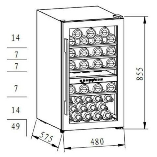 | Емкость винного шкафа (в бутылках) | 49 |