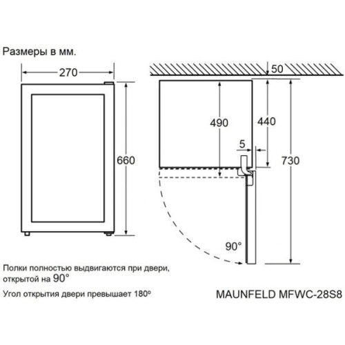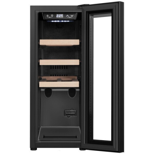 Производитель Maunfeld Цвет черный Максимальное количество бутылок 8 шт Общий объем 28 л Инверторный компрессор Нет Минимальная температура 5 °С Максимальная температура 20 °С Количество камер 1 Морозильная камера Нет Количество температурных зон 1 Материал двери металл стекло Количество полок 3 Материал полок дерево Телескопические полки Нет Максимальный уровень шума 38 дБ Управление электронное Дисплей Да Система против вибрации Да Система против конденсата Да Стекло с UV-фильтром Да Замок Нет Класс энергопотребления G Годовое энергопотребление 131 кВтч/год Климатический класс N SN ST Особенности блокировка дисплея защита от детей индикация температуры охлаждение с вентилятором перенавешиваемые двери подсветка камеры регулировка высоты регулировка температуры система No Frost скрытая ручка Ширина 27 см Глубина 49 см Высота 66 см Вес 18.88 кг Тип Отдельностоящий Название модели MFWC-28S8