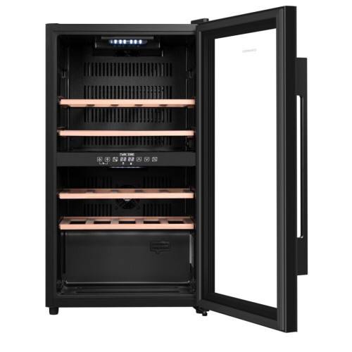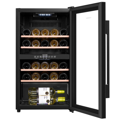 Современный винный шкаф MFWC-85D28 – инновационное решение проблемы качественного хранения вина. Расширенная функциональность, изысканный дизайн, полноценная имитация условий «винного погреба» – всё это винный шкаф MFWC-85D28. В нем можно хранить до 28 бутылок при температуре от 5 ° C до 22 ° C. Напитки нужной температуры, всегда готовые к подаче. Храните самые разнообразные сорта вин Широкий температурный диапазон винного шкафа (от 5 ° C до 22 ° C) позволит хранить красные, белые и игристые вина, а также подготавливать их к подаче. Винный шкаф MFWC-85D28 в полной мере обеспечивает сохранность вина при правильной температуре, позволяет напитку дозревать, раскрывая его вкус и аромат. Шкаф имеет две зоны, для каждой из них можно задать свой режим охлаждения — это актуально для тех, кто планирует хранить дома разные виды напитка: красное, белое, шампанское. Продуманное внутреннее пространство Внутреннее пространство рассчитано на хранение до 28 бутылок. При желании можно извлечь полку и разместить большее количество бутылок. Для размещения винных бутылок, шкаф оснащен 4 крепкими полками из массива бука. Универсальный винный шкаф для любого интерьера Изысканный дизайн модели делает её абсолютным выбором большинства: корпус выполнен из металла, окрашенной в чёрный цвет. Современная технология освещения зоны позволит вам в любое время эффектно продемонстрировать вашу винную коллекцию гостям. Каждая деталь модели гармонично дополняет друг друга, делая винный шкаф универсальным под любые стили интерьера. Дверца шкафа выполнена из тонированного стекла с защитой от УФ лучей. Сенсорная панель управления Управляйте всеми функциями винного шкафа с помощью интуитивно-понятной сенсорной панели управления одним касанием пальца. Эффективная циркуляция воздуха Шкаф оснащён внутренним вентилятором для равномерного распределения холодного воздуха ко всем полкам шкафа. Преимущества винного шкафа * вместительность до 28 бутылок; * изысканный дизайн; * равномерное охлаждение и качественная циркуляция воздуха; * защита от УФ-излучения с помощью тонированного стекла; * мягкая светодиодная подсветка; * сенсорное управление; * простая система настройки уровня температуры * 2 зоны с настраиваемой температурой