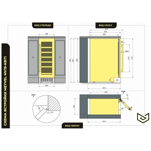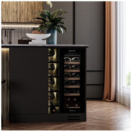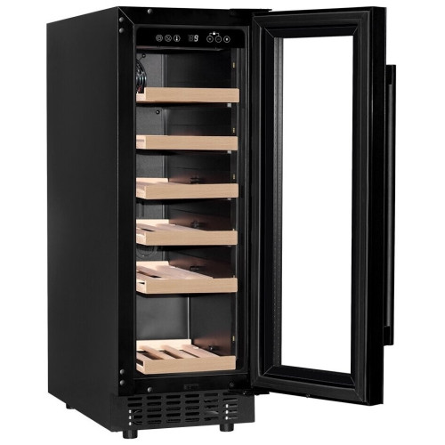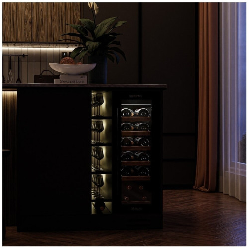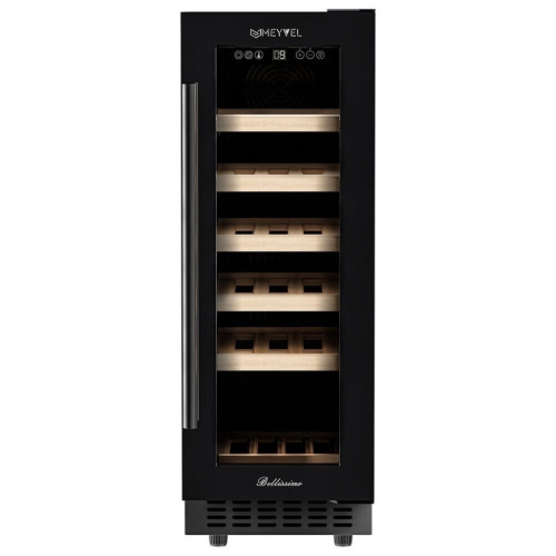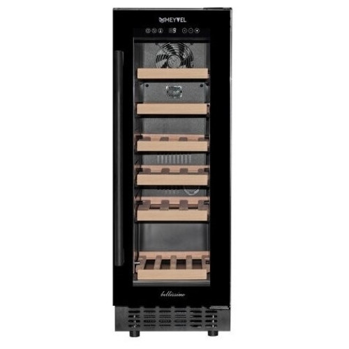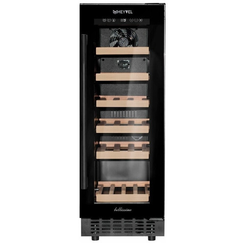 Винный шкаф Meyvel MV19-KBT1 Модель MV19-KBT1 имеет привлекательный внешний вид, сочетающий в себе неподвластное времени очарование натуральных материалов с высокотехнологичными системами сохранения продуктов. Винный холодильник Meyvel MV19-KBT1 оснащен дверью с защитой от ультрафиолетовых лучей и отлично подойдет для хранения и созревания различных сортов вин. Динамическая система охлаждения обеспечивает оптимальную температуру для вина и сохраняет необходимую влажность внутри камеры. Универсальный микроклимат Компрессорный винный шкаф Meyvel MV19-KBT1 обладает оптимальной вместимостью и даёт возможность разместить до 19 бутылок стандартного типа Бордо (0,75 л). Располагаются они на выдвижных полках из дерева. Внутреннее пространство шкафа поддерживает комфортную для вина температуру от +5°C до +20°C. Так же, эта модель поддерживает влажность в диапазоне 60-80%, как в настоящем винном погребе. Сенсорный дисплей Быстро задавайте необходимую температуру для содержимого и управляйте всеми функциями холодильника с помощью интуитивно-понятного расположения клавиш на сенсорном дисплее. Комфортное расположение Meyvel MV19-KBT1 отлично подходит для расположения на любой кухне. Шкаф можно встроить под столешницу, а так же, перенавесить дверь для более удобного использования (петли входят в комплект). Преимущества винного шкафа Meyvel MV19-KBT1 Вместимость 19 бутылок стандартного типа Бордо (0,75 л); Возможность как встроить шкаф под столешницу, так и установить отдельно; Углубленный цоколь; Температурный режим от +5°C до +20°C; Удобное сенсорное управление; Электронный термостат; Демонстрационное освещение; Панорамное освещение; Перенавешиваемая дверь (петли в комплекте); Регулируемые ножки; Тройное стекло с УФ-фильтром; Выдвижные полки; Гарантия 2 года; Обратите внимание прежде чем устанавливать винный шкаф, ознакомьтесь с указанными в инструкции показателями напряжения (В) и частоты (Гц) и убедитесь в том, что они совпадают с уровнем показателей в Вашем доме; не наклоняйте винный шкаф более чем на 45°; не устанавливайте винный шкаф вблизи с нагревающимися электроприборами, а также в зоне прямого попадания солнечных лучей; необходимо установить винный шкаф по уровню и отрегулировать зазоры между дверью и мебельным фасадом, чтобы не повредить их. Meyvel оставляет за собой право изменять параметры без предварительного уведомления.