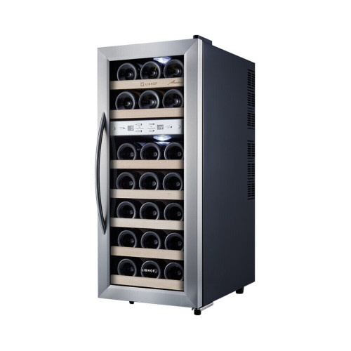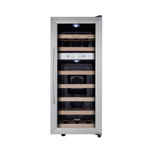 Шкаф для вина Libhof AFD-21 вместимостью до 21 бутылки стандартного объема 750 мл работает по термоэлектрическому принципу, который основан на использовании эффекта Пельтье. Основное преимущество данной модели – отсутствие губительных для бутылок с вином вибраций. Благодаря наличию двух температурных зон шкаф отлично подойдет для хранения белых и красных вин, требующих дозревания перед употреблением, а также уже готовых к сервировке. Специальное покрытие на стеклянной двери защитит Ваши бутылки от солнечного света и, в частности, от УФ-излучения, которое может быстро нанести необратимый вред вину в результате окисления танинов. Полки из массива бука устойчивы к воздействию влаги. Удобная панель управления с дисплеем и цифровым термометром находится за стеклом: для контроля работы не нужно открывать дверцу. Модель имеет стильный дизайн и будет отлично смотреться в любом интерьере.