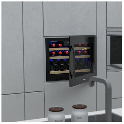 Модель MV22-KBB1 имеет привлекательный внешний вид, сочетающий в себе неподвластное времени очарование натуральных материалов с высокотехнологичными системами сохранения пищевых продуктов. Винный холодильник Meyvel MV22-KBB1 оснащен дверью с защитой от ультрафиолетовых лучей и отлично подойдет для хранения и созревания различных сортов вин. Статическая система охлаждения обеспечивает оптимальную температуру для вина и сохраняет необходимую влажность внутри камеры. Универсальный микроклимат Meyvel MV22-KBB1 поддерживает оптимальную температуру и влажность воздуха, а также изолирует вина от воздействия солнечных лучей. MV22-KBB1 отлично подходит для созревания и хранения вина (идеальная температура между +5 и +18°C). Сенсорный дисплей Быстро задавайте необходимую температуру для содержимого и управляйте всеми функциями холодильника с помощью интуитивно-понятного расположения клавиш на электронном дисплее. Преимущества винного шкафа Meyvel MV22-KBB1: Вместимость 22 бутылки 0,75 л; Температурный режим от +5°C до +18°C; Память настроек; Автоматическая разморозка; Автодоводчик двери; Двойное стекло с УФ-фильтром; Можно как встроить в нишу или колонну, так и установить отдельно; Выдвижные полки из массива бука. Обратите внимание: прежде чем устанавливать винный шкаф, ознакомьтесь с указанными в инструкции показателями напряжения (В) и частоты (Гц) и убедитесь в том, что они совпадают с уровнем показателей в Вашем доме; не наклоняйте винный шкаф более чем на 45°; не устанавливайте винный шкаф вблизи с нагревающимися электроприборами, а также в зоне прямого попадания солнечных лучей; после установки винного шкафа необходимо проверить, насколько ровно Вы настроили ножки, потому как использование винного шкафа, установленного под углом, может привести к поломке дверцы. Основные характеристики винного шкафа Макс. кол-во бутылок (бордо), шт: 22 Кол-во температурных зон: 1 Диапазон температуры , °C: от +5°C до +18°C Тип охлаждения: Компрессорный Вид охлаждения: Динамический Тип установки: Встраиваемый Тип встраивания: В колонну Тип управления: Сенсорный Термостат: Электронный Диапазон влажности, %: 60-80 Технические параметры винного шкафа Уровень шума, дБ: 45 Энергопотребление, кВт/год: 132 Класс энергоэффективности: G Климатический класс: T, ST, SN, N Корпус винного шкафа Материал корпуса: Сталь Цвет корпуса: Чёрный Дверь винного шкафа Перенавешиваемая дверь: Нет Стекло: Двойное с УФ-фильтром Рамка двери: Чёрная Ручка двери: Стальная чёрная Замок двери: Нет Автодоводчик двери: Нет Внутреннее пространство винного шкафа Объем, л: 53 Количество полок, шт: 3 Тип полок: Выдвижные Материал полок: Дерево (массив бука) Угольный фильтр: Да Подсветка: LED освещение Дополнительные функции винного шкафа Автоматическая разморозка: Да Демонстрационное освещение: Да Память настроек: Да Габаритные размеры винного шкафа Высота (мм): 456 Ширина (мм): 594 Глубина (мм): 560 Размер двери (ВхШ), мм: 456 х 594 Минимальный размер ниши для встраивания (ВxШxГ), мм: 461 х 550 х 560 Размер упаковки (ВxШxГ), мм: 635 х 660 х 625 Вес винного шкафа Вес нетто, кг: 30,5 Вес брутто, кг: 39 Общая информация винного шкафа Хладагент: R600a