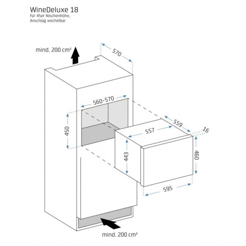 * Встраиваемый винный холодильник * Хранение до 18 стандартных бутылок вина типа Бордо высотой до 31 см * Температурная зона с регулировкой температуры 5-20 ° C * Дверь открывающаяся нажатием (петли Hettich Soft-close) * Активный вентилятор для равномерного распределения температуры * 3-слойное стекло с УФ-фильтром для защиты аромата * Сенсорная панель управления * Светодиодный индикатор температуры * Белое внутреннее освещение (отключаемое) * Съемные выдвижные деревянные полки с шарикоподшипниками * Перенавешиваемая дверца