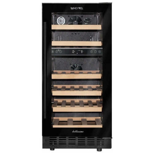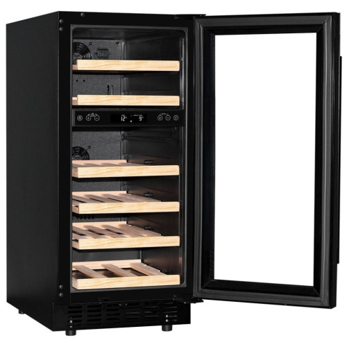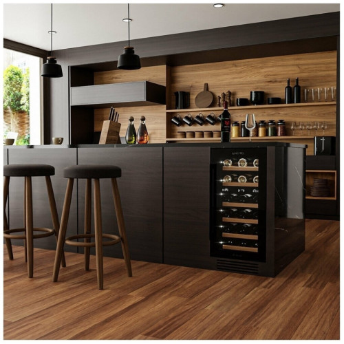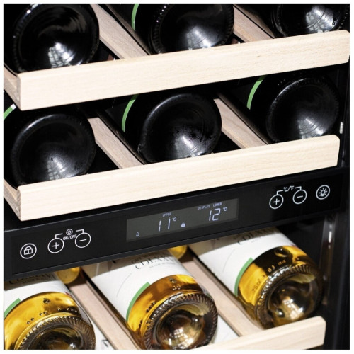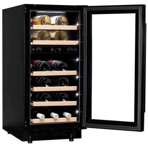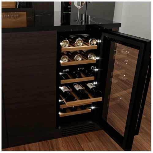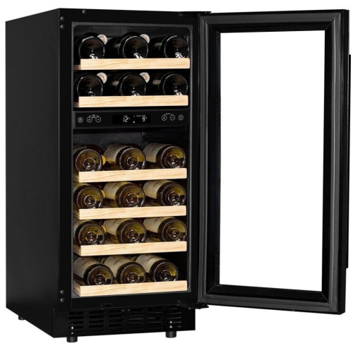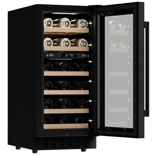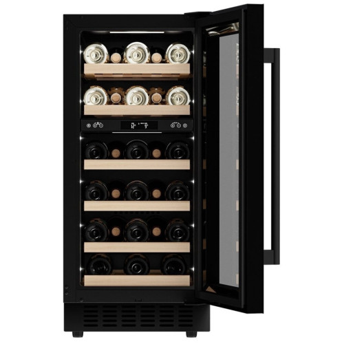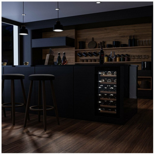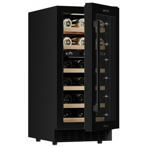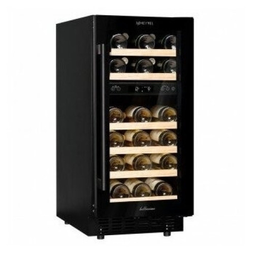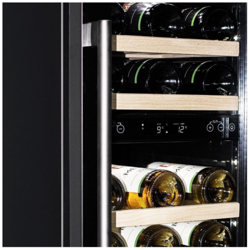 тип винного шкафа: двухтемпературный, высота: 82 см, ширина: 38 см, глубина: 57.80 см, емкость винного шкафа, бут.: 28, количество камер: 2, класс энергопотребления: A, цвет корпуса: чёрный