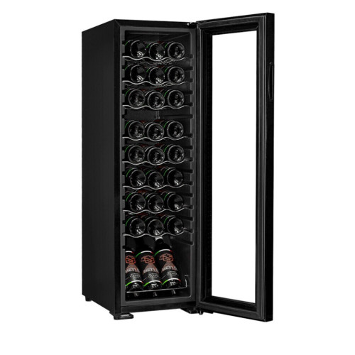 Модель MV27-CBD1 имеет привлекательный внешний вид, сочетающий в себе неподвластное времени очарование натуральных материалов с высокотехнологичными системами сохранения продуктов. Винный холодильник Meyvel MV27-CBD1 оснащен дверью с защитой от ультрафиолетовых лучей и отлично подойдет для хранения и созревания различных сортов вин. В модели установлен надёжный и экономичный компрессор с уровнем шума до 45 дБ. Гарантирует надёжную работу с низким уровнем шума. Шкаф имеет в комплекте 8 металлических полок и одну демонстрационную полку, которая позволить сразу же обращать внимание на этикетку нужных вам сортов вина. Общая вместимостью до 27 бутылок типа