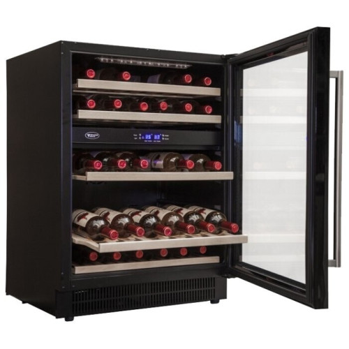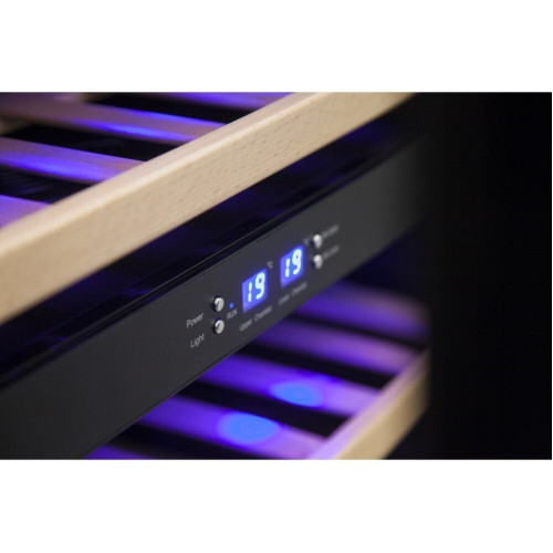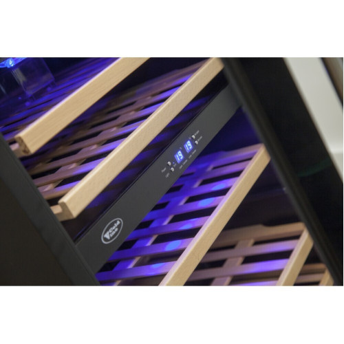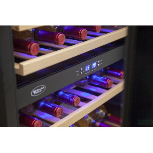 Солидный и современный компрессорный винный шкаф Cold Vine C44-KBT2 для кратковременного или длительного хранения вина. Модель имеет 2 зоны охлаждения, оснащена внутренними вентилятороми в каждой зоне для равномерного доступа холодного воздуха ко всем полкам шкафа и внешним вентилятором для быстрого эффективного охлаждения компрессора. Комплектуется холодильник C44-KBT2 пятью деревянными полками. Шкаф оснащен электронной панелью управления, с помощью которой пользователь выбирает необходимый температурный режим работы аппарата. На ней расположены кнопки для регулировки температуры и включения освещения. В винном холодильнике Cold Vine C44-KBT2 предусмотрена возможность перевешивания двери на другую сторону, что дает дополнительное удобство при установке холодильника в подходящее по габаритам место. Корпус шкафа металлический с покрытием черного цвета, дверца выполнена из прозрачного стекла, защищенного от воздействия ультрафиолетовых лучей. Ручка двери удобная, накладная, выполнена из нержавеющей стали. Цифровой индикатор температуры и внутреннее освещение - на светодиодах синего цвета. Винный шкаф Cold Vine C44-KBT2 может быть встроен в нишу с соблюдением необходимых зазоров: сверху 5 мм, справа и слева с минимальными зазорами по 1-2 мм и сзади 30 мм. Также холодильник может использоваться как отдельностоящий. Рекомендуется устанавливать винный шкаф Cold Vine C44-KBT2 вдали от прямых солнечных лучей и источников тепла (духовки, нагревателя, батареи и т.д.). Прямой солнечный свет может плохо повлиять на корпус, а источники тепла могут увеличить энергопотребление. Не рекомендуется устанавливать прибор на полы с подогревом без специальной термоизолирующей подложки. Слишком низкая температура окружающей среды также может быть причиной неправильной работы изделия.
