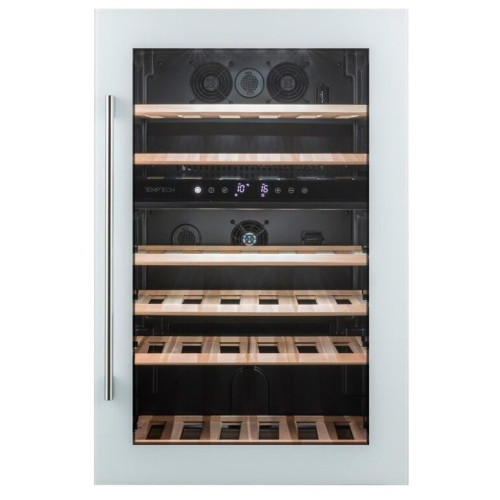 Винный шкаф Temptech OZ90DW из серии OSLO предназначен для бесшовной интеграции в высокие шкафы на кухне. Ваша винная коллекция хранится в надежном месте с правильной и стабильной температурой, оптимальной влажностью, низким уровнем вибрации и чистым воздухом! Две температурные зоны (5-12°C, 12-20°C), вместимостью 41 бутылка. Стильный дизайн с дверцей из белого стекла. Стеклопакет дверцы заполнен аргоном, что существенно снижает теплопотери. Сенсорная панель и цифровой дисплей. Внутренняя белая светодиодная подсветка. Защита Вашего вина: — Запах может проникнуть через пробку и ухудшить качество вина. В данной модели винного холодильника использованы неокрашенные деревянные выдвижные полки из бука не выделяющие запаха. — Фильтр с активированным углем обеспечивает внутри холодильника свежий и чистый воздух. — Ваша винная коллекция надежно хранится за дверцей с УФ-фильтром. Она защищает Ваше вино от вредных ультрафиолетовых лучей и тепла, которые могут попасть внутрь прибора. — Винный шкаф Temptech OZ90DW оборудован вентиляторами, обеспечивающими в нем циркуляцию воздуха и поддерживающими постоянную и стабильную температуру. — Повторное использование конденсата поддерживает оптимальную влажность. — Активный угольный фильтр обеспечивает свежий и чистый воздух. — Компрессор прибора опирается на ножки из специального материала, который гарантирует, что вибрации от его работы не распространятся на весь шкаф и Ваше вино.