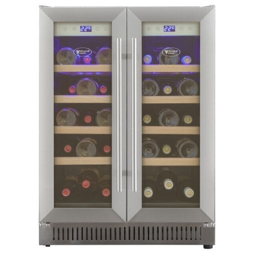 Винный шкаф C30-KST2 отличается от всей линейки винных шкафов Cold Vine своим неповторимым дизайном и функциональными особенностями. Внутреннее пространство винного шкафа разделено на две вертикальные зоны, каждая из которых имеет свою собственную дверь и систему управления. В каждой из температурных зон можно отдельно включить питание, установить требуемую температуру хранения вина от +3 до +22 ˚С и включить мягкую светодиодную подсветку синего цвета. Корпус винного шкафа выполнен из металла, окрашенного в чёрный цвет. Двери изготовлены из двойного тонированного стекла с защитой от УФ-лучей и обрамлены стальной рамой по периметру, что придаёт винному шкафу свой неповторимый стиль. В комплекте к шкафу идут две стальные ручки, в тон раме. Вместимость винного холодильника составляет 30 бутылок вина типа Бордо емкостью 0,75 л. В каждом из отделений находятся по 4 деревянных нелакированных полки, все с возможностью выдвигания на метабоксах. На каждой из полок можно расположить по 3 стандартных бутылки вина типа Бордо емкостью 0,75 л. На нижней стенке винного шкафа есть специальные углубления для комфортного расположения на них ещё трёх бутылок вина. Таким образом, каждая зона вмещает в себя по 15 бутылок вина. В винном холодильнике C30-KST2 можно также расположить бутылки с шампанским. В каждом отделении можно установить температуру от +3 до +22 ˚С и хранить как красное, так и белое вино. Компрессорный винный шкаф Cold Vine C30-KST2 предназначен для установки под столешницу. Он также может быть установлен в нишу, или быть отдельностоящим. При встройке винного холодильника в мебель нужно обеспечить доступ воздуха к вентиляционной решётке, которая расположена снизу в передней части шкафа. Стильный, неповторимый и вместительный, винный шкаф Cold Vine C30-KST2 непременно украсит Вашу кухню, и станет верным помощником в сохранении любимых напитков.