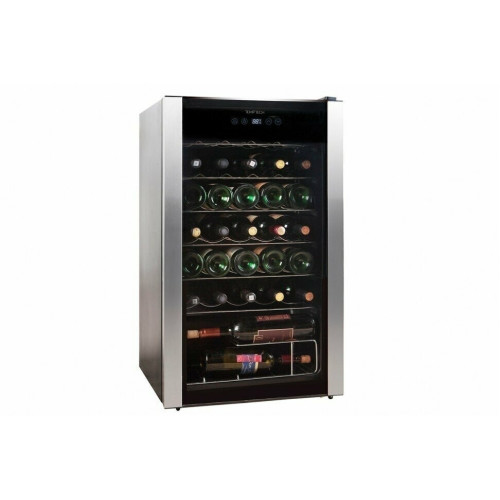 тип винного шкафа: монотемпературный, высота: 84.20 см, ширина: 49 см, глубина: 44 см, емкость винного шкафа, бут.: 34, количество камер: 1, класс энергопотребления: G, цвет корпуса: серебристый