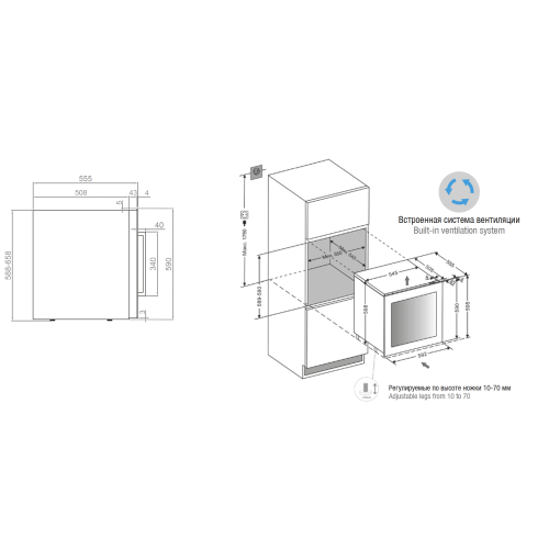 - Компактные габариты: При общей вместимости 25 бутылок стандартного размера (0,75 л) шкаф имеет скромные размеры (ШхГхВ: 59.2 x 55.9 x 59.5 см). Он легко впишется в нишу или станет самостоятельным предметом мебели.