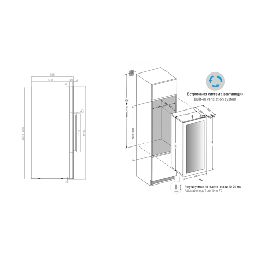 Будучи встраиваемой моделью с габаритами (ШхВхГ) 59.2 x 59.5 x 55.9 см, он идеально впишется в нишу кухонного гарнитура, барной стойки или мебельной стенки в гостиной. Вы получаете полноценную винотеку, не жертвуя ценным пространством.