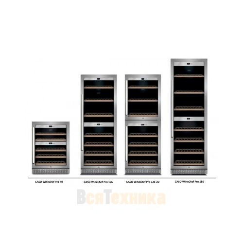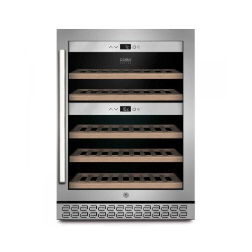 Двухзонный компрессорный винный холодильник CASO WineChef Pro 40, предназначенный для хранения вина в температурном диапазоне от 5 до 20°C. Верхняя зона предназначена для хранения белых и игристых вин (6-10°C), нижняя – для красных (10-20°C). Зоны работают автономно, каждая оборудована собственным контуром охлаждения и панелью управления. Компрессор CASO WineChef Pro 40 отличается низкой вибрацией и малым энергопотреблением (всего 142 кВтч в год). В случае, когда обе зоны - верхняя и нижняя - работают, температура верхней зоны должна быть ниже или равна температуре нижней зоны.