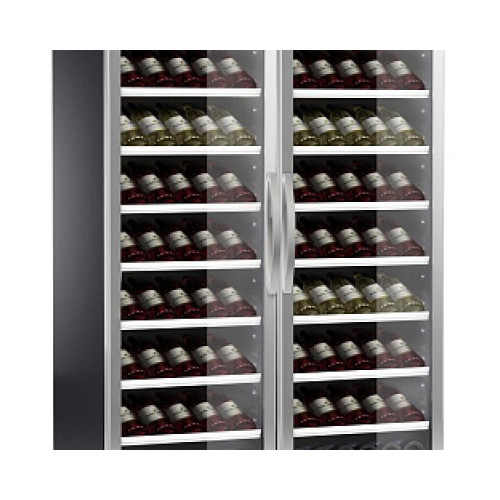 | Дополнительные особенности | Подходит для ресторана/Максимальная закладка до 356 бутылок (при демонтаже нескольких полок/в том числе наклонных)/Возможность встраивания: В колонну/Левая зона: от 5°C до 20°C/Правая зона: от 5°C до 20°C/Стандартная комплектация: 2 резервуара для воды/Индикация температуры/Дизайн Silver: передние части полок окрашены под цвет двери/Режим: Тихая работа/Функция памяти установленного режима охлаждения (при отключении электропитания заданный режим сохраняется)/Закаленное стекло/Возможность установки выдвижного ящика для открытых бутылок и крепкого алкоголя/Регулировка высоты за счет выкручивания ножек до 8 см/Задняя стенка винного шкафа абсолютно плоская (можно ставить вплотную к стене)/14 наклонных полок/Мощность подключения: 320 Вт |