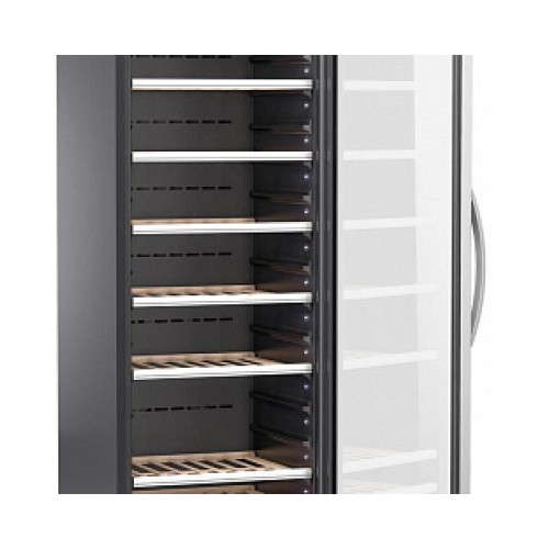 | Дополнительные особенности | Подходит для ресторана/Максимальная закладка до 178 бутылок (при демонтаже нескольких полок)/Стандартная комплектация: Резервуар для воды/Корпус: натуральный дуб/Индикация температуры/Режим: Тихая работа/Функция памяти установленного режима охлаждения (при отключении электропитания заданный режим сохраняется)/Возможность установки выдвижного ящика для открытых бутылок и крепкого алкоголя/Закаленное стекло/Регулировка высоты за счет выкручивания ножек до 8 см/Задняя стенка винного шкафа абсолютно плоская (можно ставить вплотную к стене)/Мощность подключения: 160 Вт |