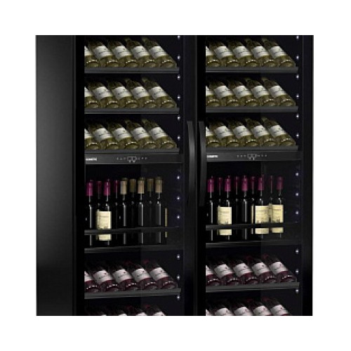 Дополнительные особенности Подходит для ресторана/Возможность встраивания: В колонну/Индикация температуры/Индикатор открытой двери/Дизайн Black: передние части полок окрашены под цвет дверей/Режим: Тихая работа/Закаленное стекло/Максимальная закладка до 310 бутылок (при демонтаже нескольких полок/с том числе наклонных)/Выдвижные ящики для хранения открытых бутылок с вином/также для размещения магнумов/хьюмидоров/шоколада/Функция памяти установленного режима охлаждения (при отключении электропитания заданный режим сохраняется)/Регулировка высоты за счет выкручивания ножек до 8 см/Задняя стенка винного шкафа абсолютно плоская (можно ставить вплотную к стене)/Мощность подключения: 320 Вт/10 презентационных полок/Стандартная комплектация: 2 резервуара для воды/4 ключа/ярлыки для записей даты закладки вина