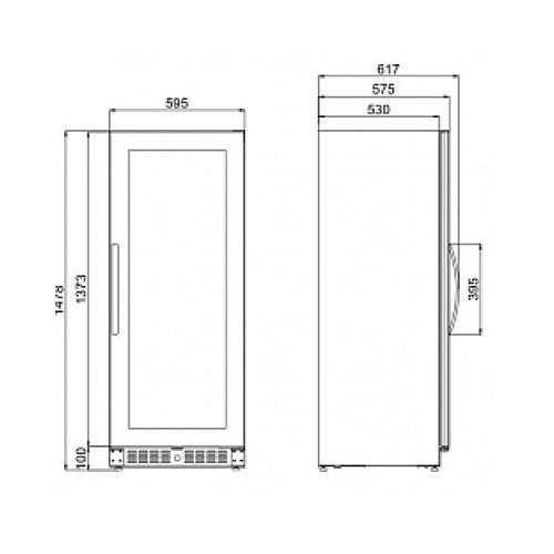 Габариты, cм (ШхГхВ) 59.5х57.5(с ручкой 61.5)х147.6