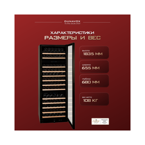 | Вместимость, бутылок вина | 181 |