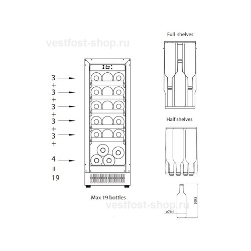 | Вместимость, бутылок вина | 19 |