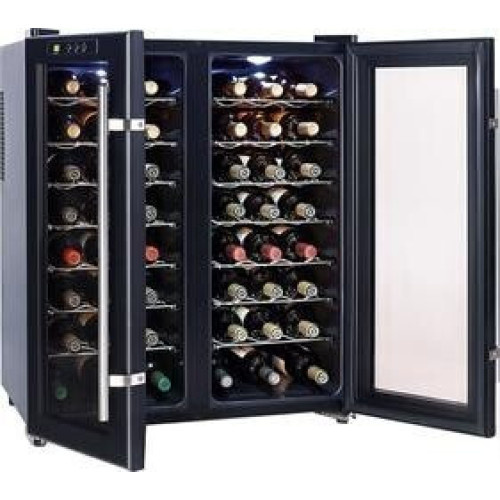 Винный шкаф Cavanova CV048-2Т спроектирован очень оригинальным образом. Несмотря на достаточно большую вместимость (48 бутылок), он занимает немного места и отлично вписывается в самые небольшие помещения. Две распашные дверцы винного холодильника упрощают доступ к вину и очень необычно дополняют интерьер. Так же одним из его достоинств является полное отсутствие шума, которое достигается благодаря системе охлаждения, основанной на принципе Пельтье. В линейке Cavanova это самый большой винный шкаф холодильник, оснащенный термоэлектрической системой охлаждения и исключающий таким образом любые вибрации. Это позволило разместить в нем металлические выдвижные полки, которые элегантно дополняют его необычный дизайн.