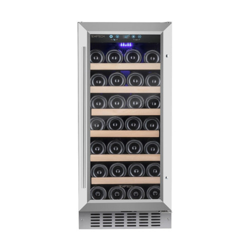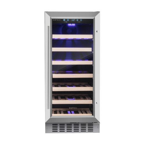 Винный шкаф Temptech Premium WPQ38SCS предназначен для охлаждения, хранения и демонстрации бутилированного вина. Модель оснащена сенсорной панелью с дисплеем для регулировки температуры и освещения, 7 выдвижными полками, фильтром с активированным углем и синей светодиодной подсветкой. Дверца выполнена из двухслойного стекла с защитой от УФ-лучей, передняя панель - из нержавеющей стали, полки - из бука. Особенности: * Оптимальная влажность * Стабильная температура * Вентиляторы, обеспечивающие циркуляцию воздуха * Бесшумный компрессор * Специально разработанные ножки - гасители вибрации * Встраивается под столешницу или устанавливается как отдельностоящий * Хладагент: R600a * Энергетический класс: G * Сертифицировано RoHs, CE, CB, ERP