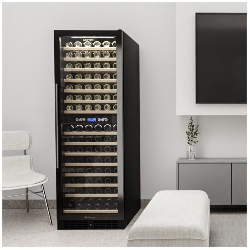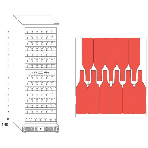 Модель MV160-KBT2 имеет привлекательный внешний вид, сочетающий в себе неподвластное времени очарование натуральных материалов с высокотехнологичными системами сохранения продуктов. Винный холодильник Meyvel MV160-KBT2 оснащен дверью с защитой от ультрафиолетовых лучей и отлично подойдет для хранения и созревания различных сортов вин. Динамическая система охлаждения обеспечивает оптимальную температуру для вина и сохраняет необходимую влажность внутри камеры. Особенности: Универсальный микроклимат Компрессорный винный шкаф Meyvel MV160-KBT2 обладает большой вместимостью и способен разместить до 160 бутылок. Располагаются они на полках из массива бука. Внутреннее пространство шкафа разделено на 2 температурные зоны с возможностью настраивать каждую из них: диапазон нижней зоны от 10C до 18C, а верхней - от 5C до 10C. Холодильник поддерживает влажность в диапазоне 60-80, как в настоящем винном погребе. Удобная установка и управление Быстро задавайте необходимую температуру для содержимого и управляйте всеми функциями холодильника с помощью интуитивно-понятного расположения кнопок на сенсорном дисплее. Так же, эта модель имеет возможность регулировать ножки по высоте, что позволяет установить шкаф в любое удобное место на Вашей кухне. Преимущества: Вместимость 160 бутылок 0,75 л; Две температурные зоны; Общий температурный диапазон от 5C до 18C; Память настроек; Удобное сенсорное управление; Автоматическая разморозка; Тройное стекло с УФ-фильтром; Наличие двух полок с увеличенным пространством, для размещения нестандартных бутылок; Стальной чёрный корпус; Можно установить шкаф отдельно или встроить в колонну; Возможность регулировать ножки; Выдвижные полки из массива бука Важно: - прежде чем устанавливать винный шкаф, ознакомьтесь с указанными в инструкции показателями напряжения (В) и частоты (Гц) и убедитесь в том, что они совпадают с уровнем показателей в Вашем доме; - не наклоняйте винный шкаф более чем на 45; - не устанавливайте винный шкаф вблизи с нагревающимися электроприборами, а также в зоне прямого попадания солнечных лучей; - после установки винного шкафа необходимо проверить, насколько ровно Вы настроили ножки, потому как использование винного шкафа, установленного под углом, может привести к поломке дверцы. Общие данные: Размеры: высота: 176,9 см ширина: 59,5 см глубина: 68 см Объем, л: 425 Максимальное количество бутылок: 160 Тип управления: электронный Класс энергоэффективности: C Климатический класс: SN-T (от 10C до 43C) Энергопотребление, кВт/год: 235 Количество температурных зон: 2 Диапазон температуры верхней зоны, C: от 5 до 10 Диапазон температуры нижней зоны, C: от 10 до 18 Тип системы охлаждения: компрессорный Винное отделение: Количество полок: 15 Тип полок: Выдвижные Материал полок: Дерево (массив бука) Угольный фильтр LED освещение Вид охлаждения: динамическое Автоматическая разморозка Демонстрационное освещение Дополнительная информация: Тип управления: Сенсорный Термостат: электронный Уровень шума, дБ: 45 Тип установки: Встраиваемый, Отдельностоящий Тип встраивания: В нишу Встроенная система вентиляции Диапазон влажности, : 60-80 Материал корпуса: сталь Цвет корпуса: Чёрный Регулируемые ножки Перенавешиваемая дверь Стекло: тройное с УФ-фильтром Рамка двери: Чёрная Ручка двери: Чёрная Замок двери Зимний Режим Память настроек Хладагент: R600A Размер д