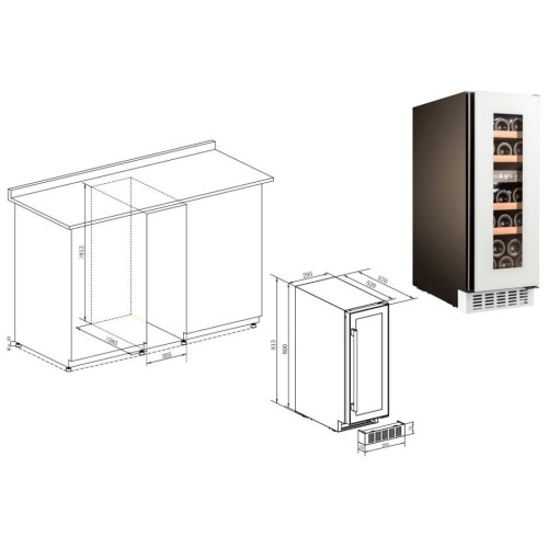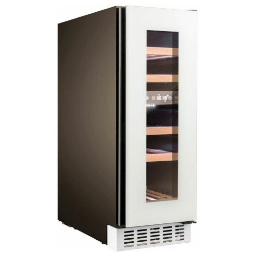 Основные характеристики - Тип: климатический шкаф - Тип установки: отдельностоящий - Тип компрессора: стандартный - Количество компрессоров: 1 - Количество отделений: 1 - Общий полезный объем: 58 л - Максимальное количество бутылок: 17 - Назначение винного шкафа: для длительного хранения Охлаждение - Тип системы охлаждения: компрессорная - Система охлаждения: динамическая - Хладагент: R600a (изобутан) - Климатические класс: N Управление - Тип управления: электронное - Способ управления: сенсорный - Расположение панели управления: в камере Дисплей - Цифровой дисплей: да Температурные режимы - Количество температурных зон: 2 - Температура хранения: 5-20 °C - Температура хранения в зоне 1: 5-12 °C - Температура хранения в зоне 2: 12-20 °C Отделения - Количество полок: 5 - Тип полок: выдвижные Индикация - Индикация температуры: да - Индикация включения: да - Индикация отключения питания: да - Индикация отключения электропитания: визуальная - Индикация повышения температуры: визуальная Электропитание - Класс энергопотребления: F - Энергопотребление: 93 кВтч/год - Напряжение: 220-240 B - Мощность подключения: 88 Вт - Уровень шума: 39 дБ Защита и безопасность - Тип сигнализации: оптический - Сигнализация о повышении температуры: да - Сигнализация об отключении питания: да - Защита от детей: да Освещение - Тип освещения: светодиодное (LED) Функции и возможности - Независимая регулировка температуры в камерах: да - Дополнительная информация: стекло с УФ-фильтром Особенности конструкции - Количество дверей: 1 - Тип двери: прозрачная - Открытие дверцы: направо - Перенавешиваемые двери: да - Угольный фильтр: да - Встроенный вентилятор для распределения температуры: да Цвет и материал - Цвет: белый - Цвет полок: бежевый - Материал двери: нержавеющая сталь, стекло - Материал боковых стенок: нержавеющая сталь - Материал полок: дерево Комплектация - Инструкция: да Размеры и вес - Высота: 81.3 см - Ширина: 29.5 см - Глубина: 57 см - Вес: 29 кг