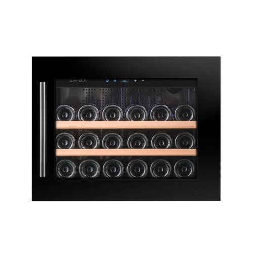 * Высококачественный современный винный шкаф с эксклюзивным дизайном для бесшовного встраивания в кухню. * Одна температурная зона (5-20°C), вместимость до 18 винных бутылок. * Стильный дизайн с чёрной стеклянной передней панелью, выдвижными полками из бука и белой внутренней светодиодной подсветкой. * Сенсорная панель и цифровой дисплей. * Ваша винная коллекция надежно хранится за дверцей с УФ-фильтром, которая защищает ее от вредных ультрафиолетовых лучей и тепла, которые могут попасть внутрь прибора. * Если Вы храните в винном шкафу одновременно белое/игристое вино и красное вино, рекомендуем установить температуру 12°C. * Ваша винная коллекция надежно хранится за дверцей с УФ-фильтром, которая защищает ее от вредных ультрафиолетовых лучей и тепла, которые могут попасть внутрь прибора. * Стеклопакет дверцы заполнен аргоном, что существенно снижает теплопотери. * Данная модель винного шкафа оборудована вентиляторами, которые обеспечивают в нем циркуляцию воздуха, поддерживая постоянную и стабильную температуру. Конденсат используется повторно и поддерживает в приборе оптимальную влажность, а активный угольный фильтр обеспечивает свежий и чистый воздух. * Винный шкаф обладает низким энергопотреблением и эффективным охлаждением с низким уровнем вибрации.