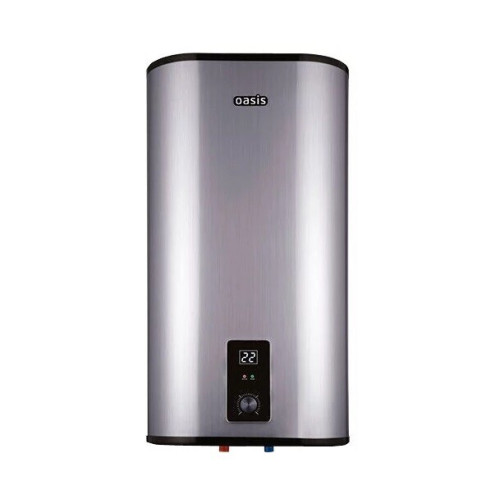 Водонагреватель накопительный Oasis 100Z предназначен для снабжения горячей водой загородного дома или дачи, где нет подвода природного газа, а также квартир в период планового отключения горячей воды. Он выполнен в зеркальном исполнении и удачно впишется в современный интерьер ванной комнаты или кухни. Принцип работы Вода, поступившая из водопровода в бак, нагревается до 35-75 градусов посредством нагревательного элемента, установленного внутри. Устройство автоматически поддерживает необходимую температуру. Коррозионная стойкость Внутренний бак изготовлен из высококачественной нержавеющей стали, что предотвращает образование коррозии и, как следствие, позволяет избежать утечек и продлевает срок эксплуатации водонагревателя. Управление и индикация Установка необходимой температуры осуществляется при помощи термостата, данные о температуре воды выводятся на цифровой дисплей, рядом с которым размещены индикаторы питания и нагрева.
