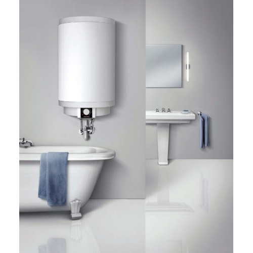 Водонагреватель накопительный Stiebel Eltron PSH 100 Trend предназначен для обеспечения горячей водой одной или более точек пользования в квартирах, коттеджах или частных домах. Прибор устанавливается с подключением к водопроводной сети, вследствие чего находится под постоянным давлением. Регулировка температуры осуществляется бесступенчато, с помощью эргономичной ручки-регулятора. Монтаж устройства осуществляется на стену, которая должна быть рассчитана на такую нагрузку. Запрещен монтаж прибора в углу помещения, поскольку при креплении прибора на стене необходим доступ к шурупам сбоку. Легкость установки обеспечивает закрепленная на корпусе универсальная планка с пазами. Водонагреватель оснащен предохранительным клапаном, который защищает прибор от перегрева и избыточного давления. Дополнительной гарантией долговечности служит встроенный анод, препятствующий разрушению стенок, вследствие электрохимических процессов, происходящих между нагревательным элементом и баком прибора. Современный нагревательный элемент выполнен из стали высокого качества, что позволяет значительно сократить количество накипи, образуемое в процессе эксплуатации. Элегантный минималистичный дизайн будет удачно сочетается с любым интерьером ванной комнаты.