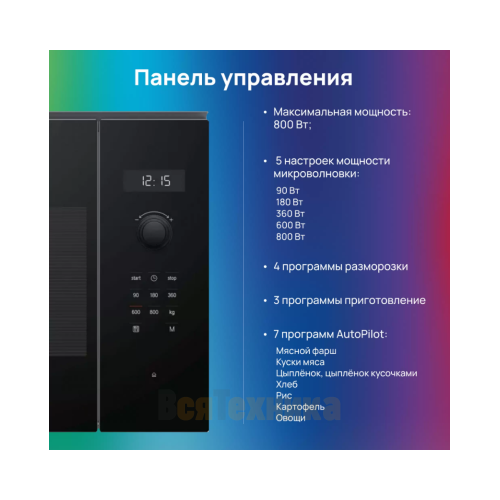 - Объем и мощность: Вместительная камера на 25 литров и мощность микроволн 900 Вт позволяют быстро разогревать порции для всей семьи, размораживать продукты и готовить разнообразные блюда.