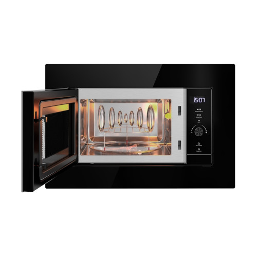 Описание Благодаря встраиваемой микроволновке вы сможете не только быстро и легко разогревать и готовить еду, но и использовать гриль, чтобы придать вашим блюдам неповторимый вкус. Кварцевый гриль с мощностью 800 Вт гарантирует равномерную прожарку и хрустящую корочку. Свч-печь имеет 5 уровней мощности микроволн. Благодаря мощности 700 Вт обеспечивается быстрое и равномерное приготовление. Комбинированный режим, сочетающий микроволны и гриль, гарантирует высокую эффективность и дает возможность готовить различные блюда. Функция разморозки позволяет быстро и эффективно подготовить продукты к приготовлению. Встраиваемая микроволновка оснащена 6 автопрограммами для приготовления различных блюд. Объем микроволновки в 20 литров позволяет готовить блюда для всей семьи или разогревать большие порции еды. Диаметр вращающейся тарелки этой микроволновой печи составляет 24,5 см. Это стандартный размер, подходящий для большинства блюд и продуктов. Наличие таймера на 60 минут и функции блокировки от детей повышает уровень удобства и безопасности при использовании этой печи. Внутренняя часть микроволновой печи выполнена из нержавеющей стали, что обеспечивает простоту в уходе и долгий срок службы. Фасад выполнен из закаленного черного стекла, которое придаёт вашей кухне стильный и современный вид. Сенсорное управление и цифровой дисплей с подсветкой делают взаимодействие с свч-печью максимально комфортным и лёгким. Микроволновая печь Libhof MWB-5220B прекрасно впишется в интерьер вашей кухни и станет надежным помощником в приготовлении различных блюд.