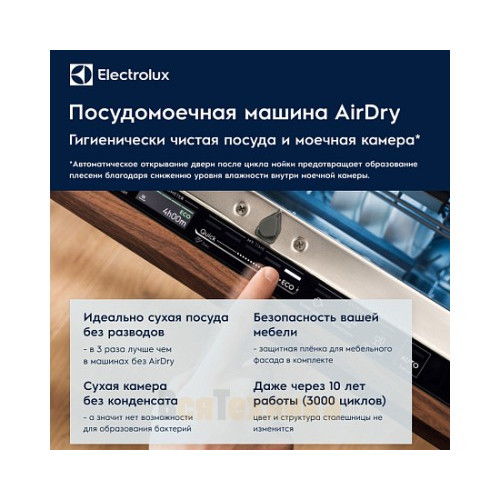 Встраиваемая посудомоечная машина Electrolux EMA917101L — это разумное вложение в бытовой комфорт. Она не просто моет посуду, а делает это умно, экономно и бесшумно, освобождая вам часы времени для более приятных дел. Сочетание проверенного шведского качества, передовых технологий и продуманного дизайна делает эту модель одним из лучших предложений в своем сегменте по цене 37 619,06 рублей. Подарите себе и своей семье свободу от рутинной работы с Electrolux.