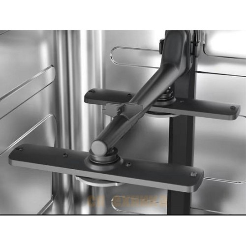 Специальная зона для интенсивного мытья в нижней корзине. Сюда можно поместить сильно загрязненные предметы — противни, решетки гриля, кастрюли. Мощная струя воды с повышенным давлением и температурой целенаправленно удаляет даже пригоревшие остатки пищи.