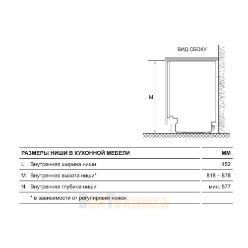 | Размеры ниши для встраивания (ВхШхГ), см | 82–88 х 45.2 х 58 |