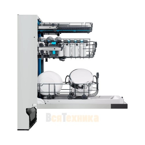 Система оснащена интеллектуальными датчиками, которые выводят информацию на панель управления. Машина самостоятельно отслеживает уровень соли и ополаскивателя, предупреждая о необходимости дозаправки.