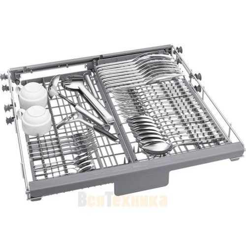- Гибкая загрузка и удобство: Система FlexLoad™ включает регулируемые по высоте верхнюю корзину и складные держатели для стаканов. Это позволяет разместить высокую посуду, крупные кастрюли или хрупкие бокалы, оптимизируя каждый сантиметр пространства.