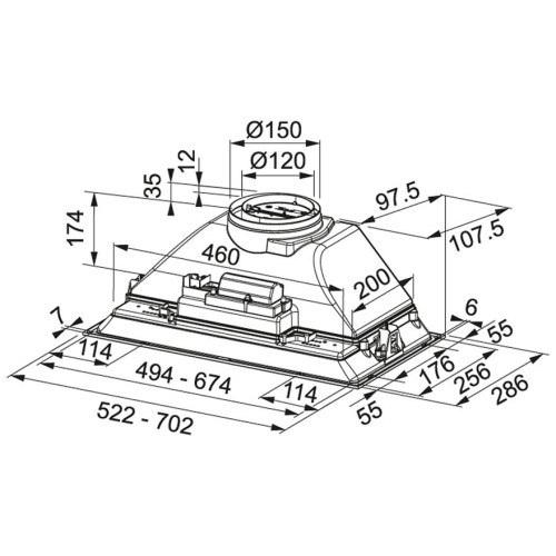 Бренд: Franke;Расположение: Встраиваемая;Тип вытяжки: Встраиваемая;Производительность куб. м/ч: 650;Режимы работы: Отвод;Количество скоростей: 3;Управление: Электронно-механическое;Цвет: Нержавеющая сталь;Ширина, см: 52.2;Глубина, см: 28.6;Высота, см: 17.4;Уровень шума дБ: 54-70;