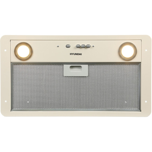 Кухонная вытяжка является неотъемлемым элементом любой кухни. От этого прибора зависит, будет ли кухня уютным и приятным «уголком» для встреч или превратится в шумное кухонное помещение, полное различных ароматов. Hyundai разработал кухонную вытяжку HBB 6035 со светодиодной подсветкой и 3 мощностями работы вентилятора, обеспечивающими воздухообмен 800 м3/час. Большим плюсом встраиваемой кухонной вытяжки является то, что корпус прибора полностью спрятан в кухонном шкафу – видна только панель управления с кнопками и алюминиевый моющийся жироулавливающий фильтр. 2 светодиодных светильника помогут не только при приготовлении пищи, но и когда необходимо создать особую атмосферу. Подсветка прекрасно подойдёт для романтического вечера, или когда вы хотите посидеть в тишине и расслабиться за чашкой чая. Эта модель кухонной вытяжки может работать как на отвод воздуха в вентиляцию (потребуется подключение воздушного канала), так и в режиме рециркуляции (потребуется установка сменных фильтров). Бежевый цвет вытяжки хорошо сочетается с кухнями, выполненными в современном или классическом исполнении. Сделайте свою кухню уютной и функциональной с кухонной бытовой техникой Hyundai!