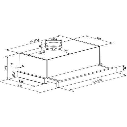 Вытяжка MAUNFELD встраивается в навесной шкаф и благодаря телескопической конструкции эффективно поглощает загрязненный воздух. Металлические жироулавливающие фильтры легко мыть в посудомоечной машине. За переключение двух скоростей и включение светодиодной подсветки (1*1,5 Вт) отвечает колыбельное управление, которое находится в выдвижной части. Модель может работать в режиме прямого отвода или в режиме рециркуляции воздуха. Полная потребляемая мощность составляет 101,5 Вт. Максимальная производительность достигает 520 м3/ч, при этом уровень шума не превышает 56 дБ. Применяется в помещениях до 15 кв. м.