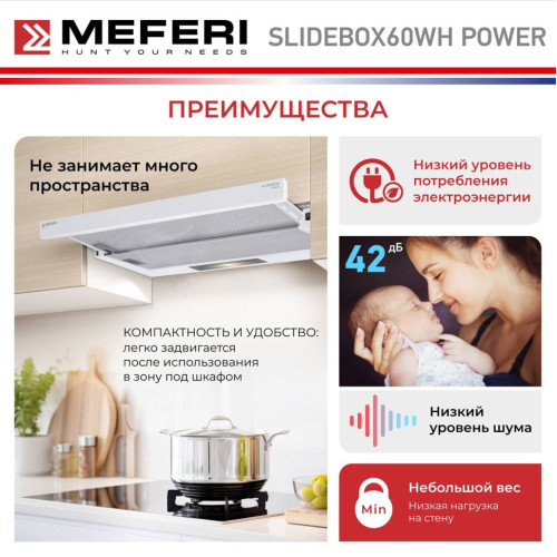 Встраиваемая вытяжка Meferi SLIDEBOX60WH Power