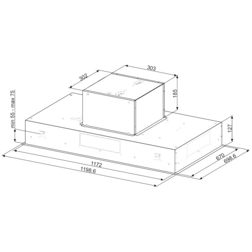 Вытяжка потолочного крепления, 120 см, нержавеющая сталь. Максимальная производительность 800 м?/ч Периметральное всасывание 3 скорости + интенсивный режим Режим