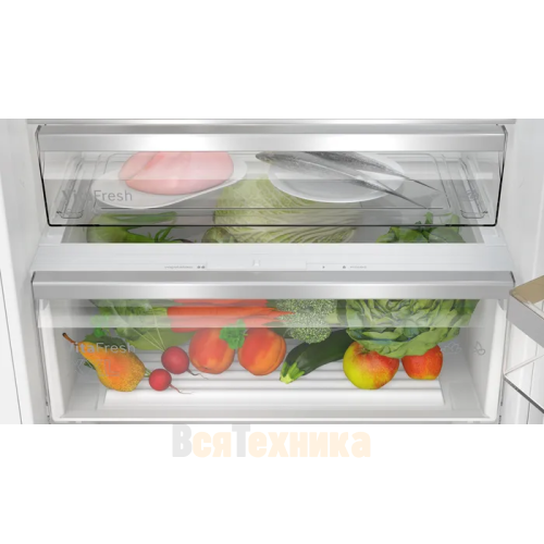 - Зона свежести VitaFresh 0°C: Специальный выдвижной лоток с регулируемой влажностью и точной температурой около нуля. Идеально для хранения рыбы, мяса, сыров и свежих овощей в 2-3 раза дольше без потери вкуса и витаминов.