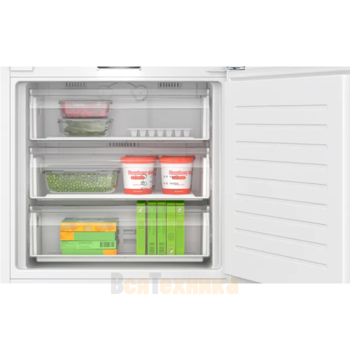 - Полный NoFrost в обеих камерах: Забудьте о разморозке! Система циркулирует холодный сухой воздух, предотвращая образование инея и льда как в холодильном, так и в морозильном отделении.